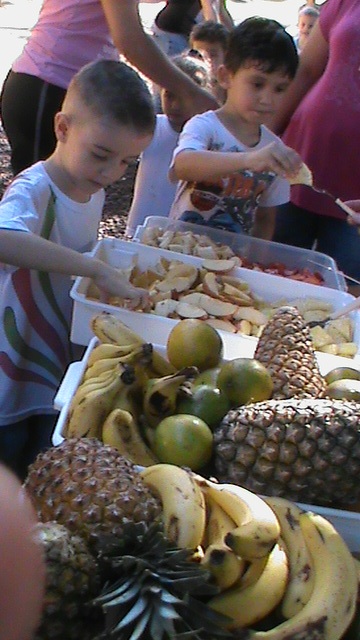 Os alunos da pré-escola, das professoras Adriana, Célia e Marta, trouxeram frutas para compartilhar com as demais turmas.